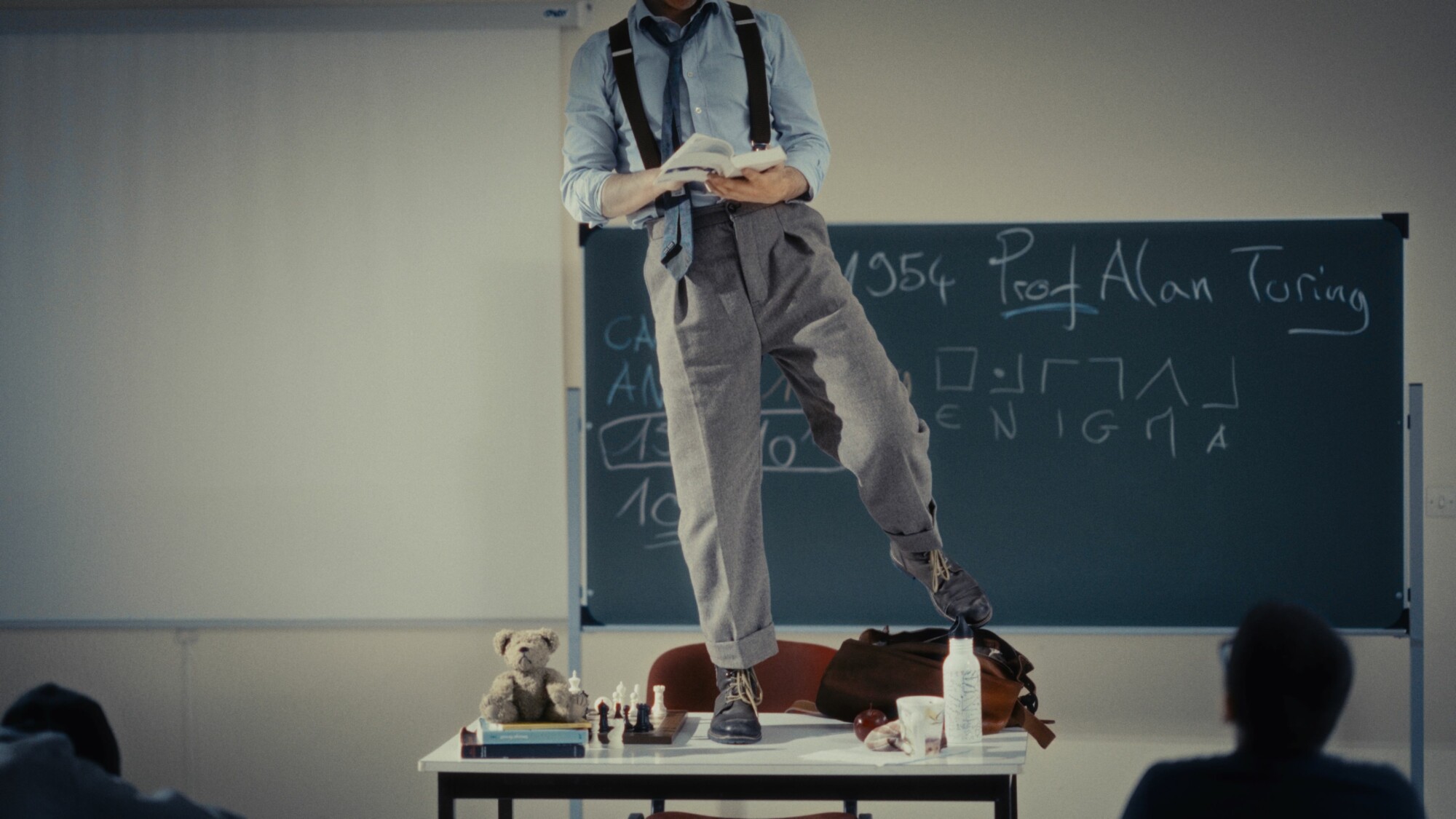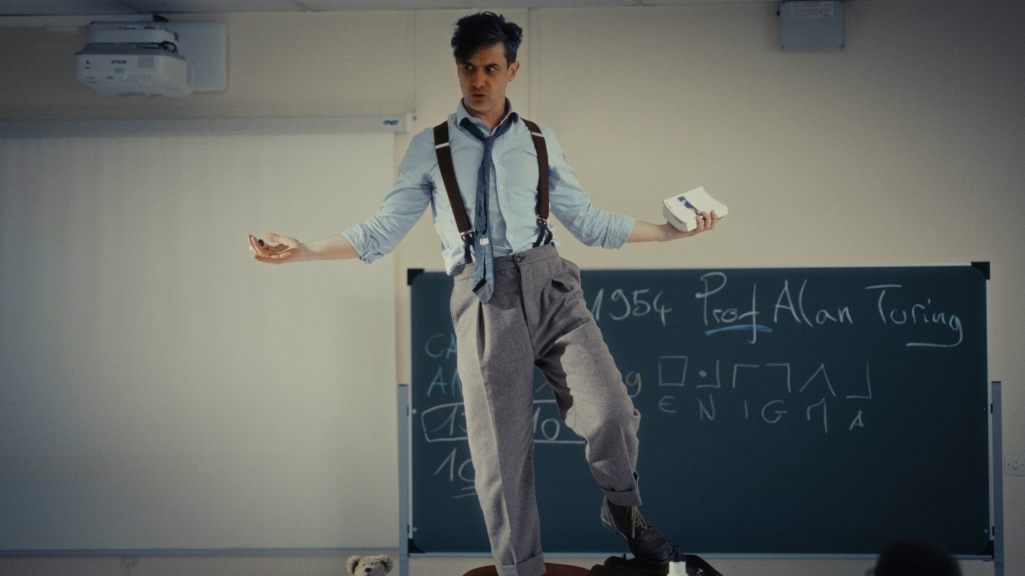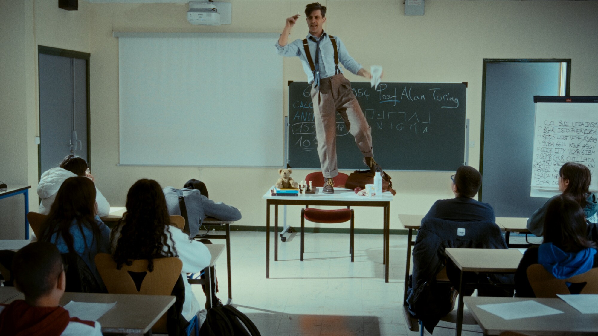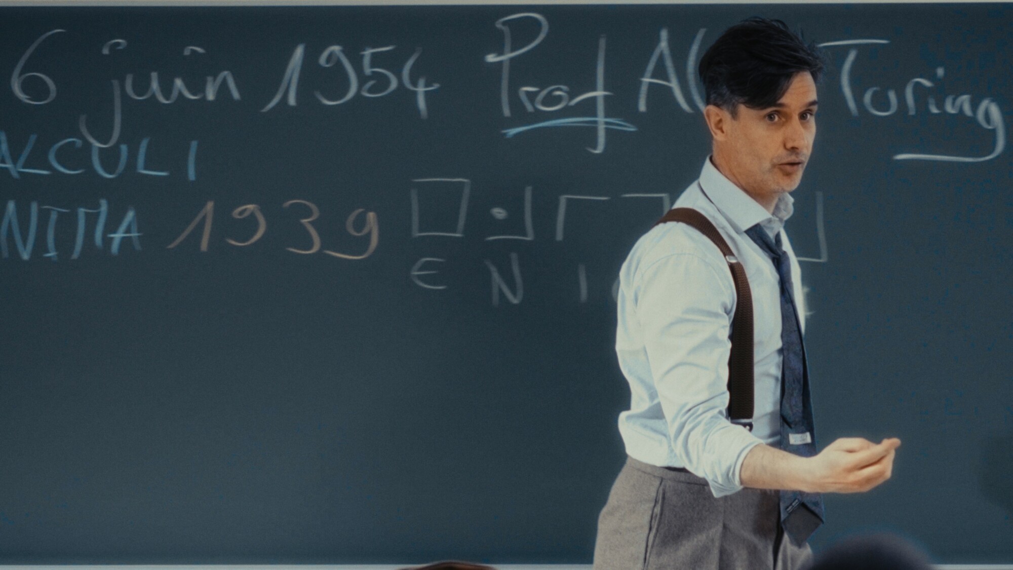 Un nouveau professeur de mathématiques surgit et se présente. Il s’appelle Alan Turing :